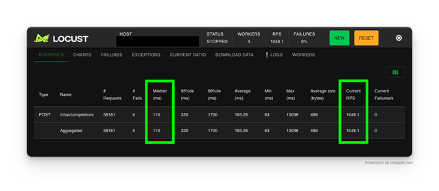 Note: we're currently migrating to aiohttp which has 10x higher throughput. We recommend using the aiohttp_openai/ provider for load testing.